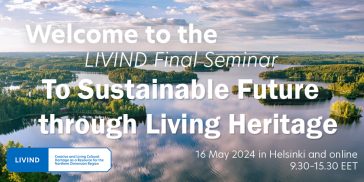 What roles does living cultural heritage play in the sustainability transition? How can different forms of living heritage, various traditional knowledge and skills, everyday collective activities, and celebratory expressions contribute to more ecologically, economically, socially, and culturally sustainable development? Come and hear what we have learned in the international LIVIND project in recent years! Coordinated by the Finnish Heritage Agency, this three-year project brought together actors of living cultural heritage from the Nordic and Baltic countries and Poland. The project now culminates in the final event in Helsinki in May.